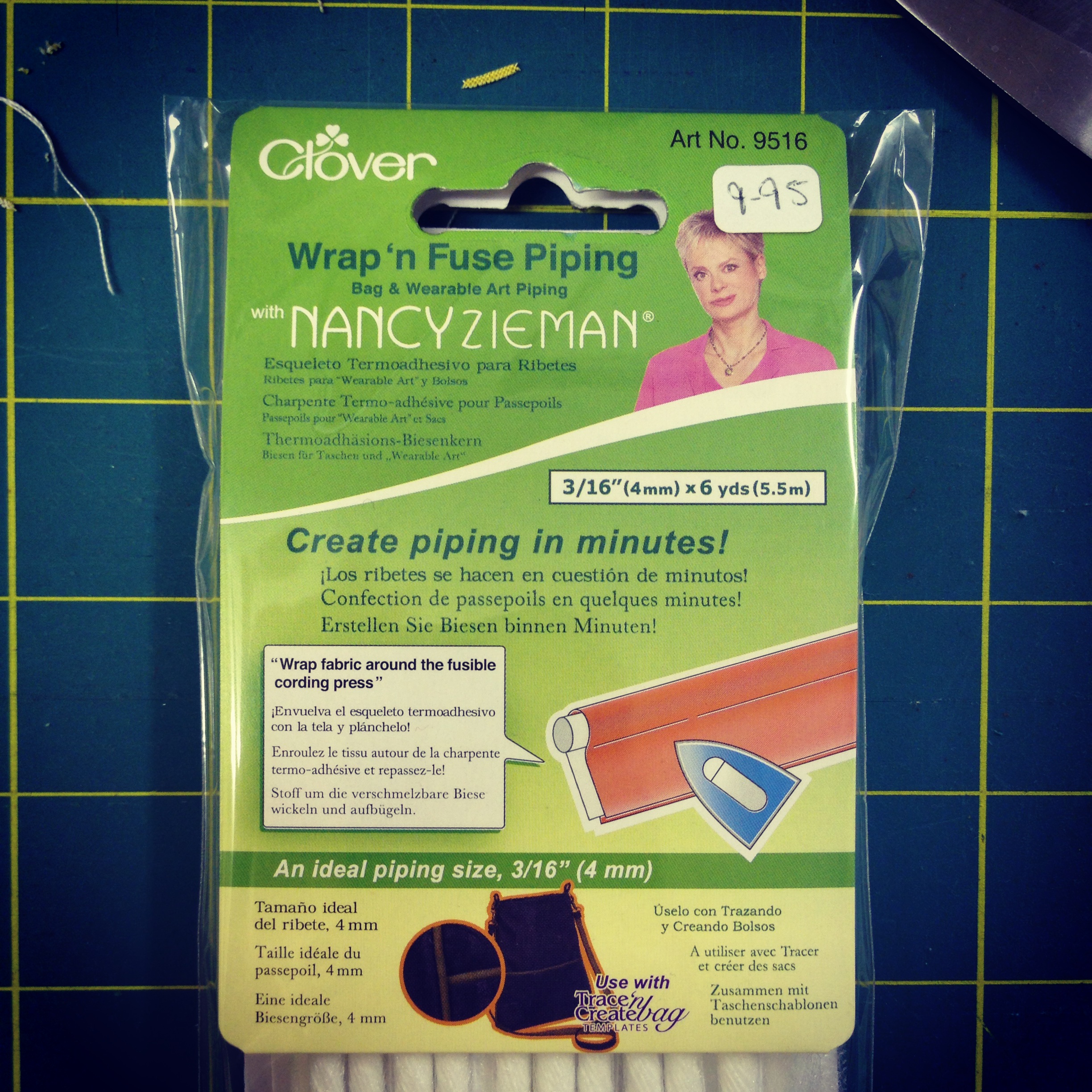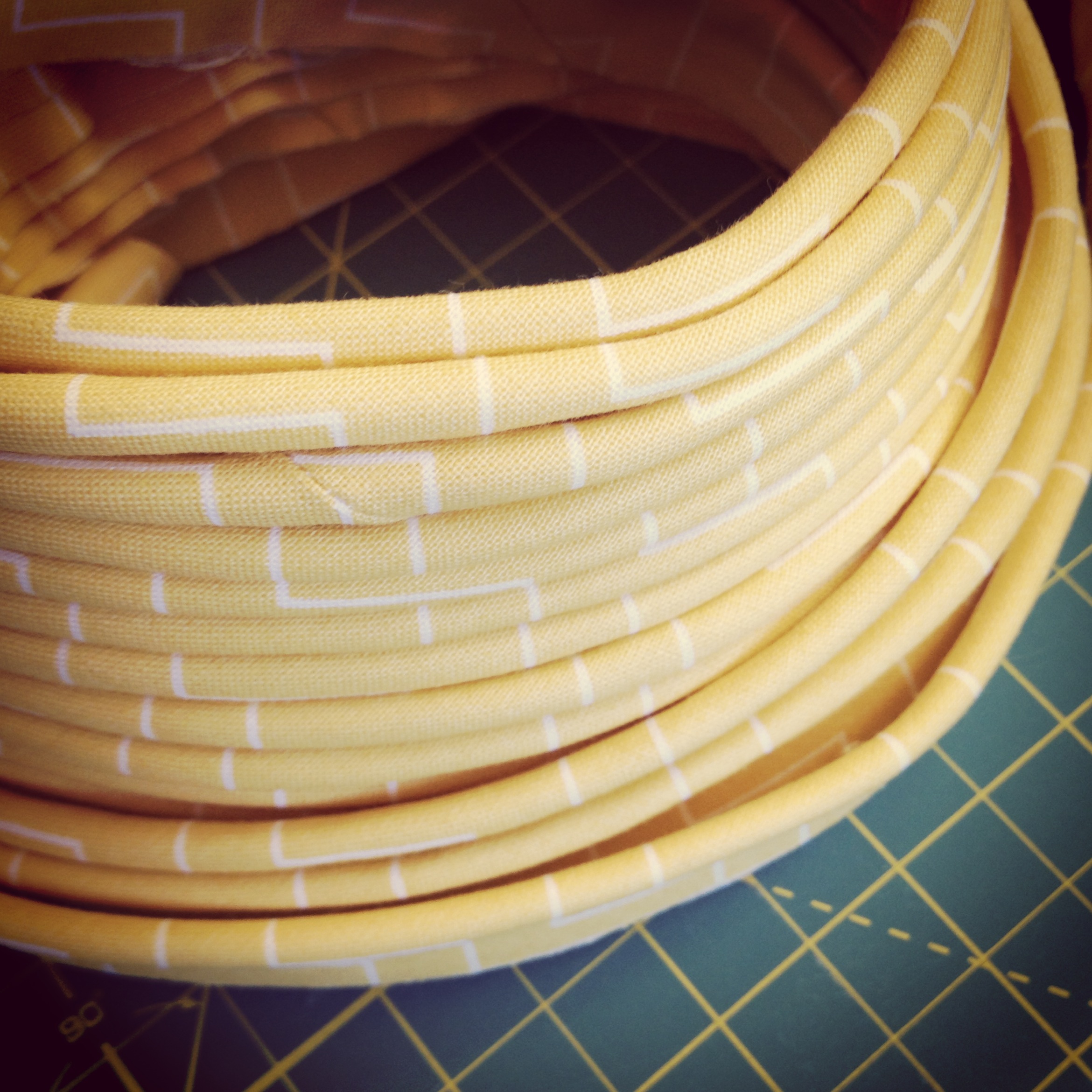 Not only did I get some gorgeous yellow chevron fabric for the lining and piping today, I also found a fantastic product from Clover called “Wrap ‘n Fuse Piping” which saved sewing the piping twice as the pattern suggests or mess around with separate binding tape! Consequently I was able to make 6 yards of piping in no time at all!