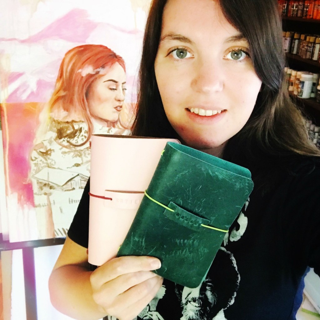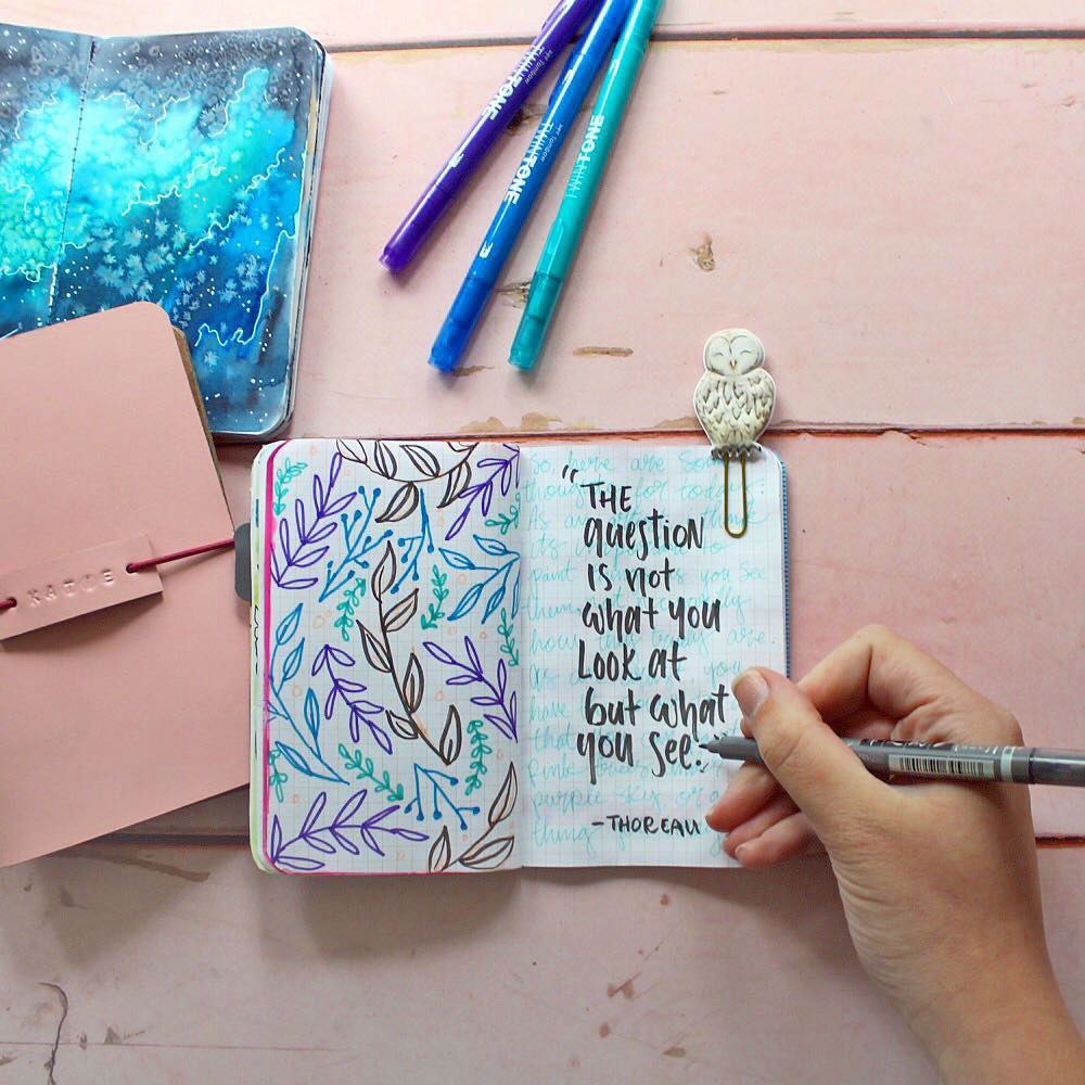How do you use your inkDori day to day? I keep a few different journals going at once and so I have them in my Macaroon inkdori. She sits on my desk so she’s easily within reach each day for me to work in my journals. Inside I’ve got a random art journal, a journal for notes, and a galaxy journal.