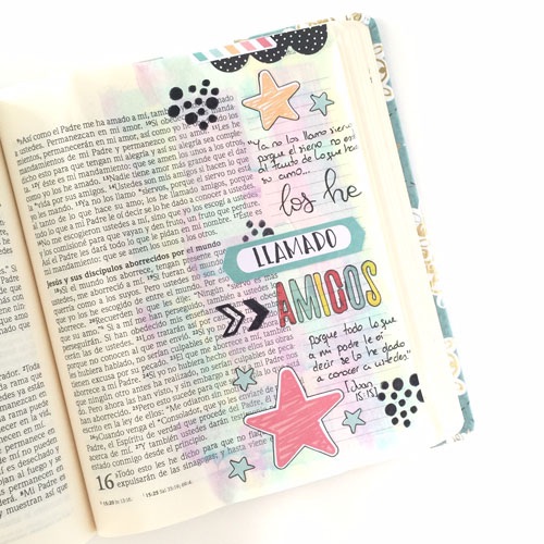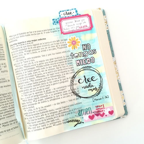 How did you discover / start using your journaling Bible for creative worship? I met our Lord Jesus twelve years ago but it was two years ago when I started needing something more than just a nightly prayer. That was my crucial point in my way with the Lord, I needed desperately a Bible to go deeper in my relationship with Him and just in that season of my life I saw on Instagram someone decorating a Bible using Scrapbooking techniques, and it was super surprising.