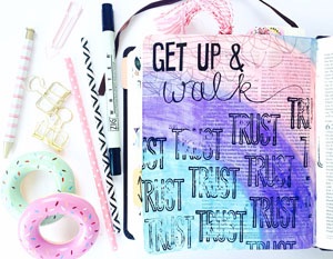 If you’re a scrapbooker, by all means, go for it, and use every supply you can get your hands on! Either way though – whether you want to use just a pen and a paperclip, or if you want to paint every page and cover it in stickers, cut-outs, stamps, and glitter – check your heart often and listen to God. This journey is between you and Him, and it’s not at all about showcasing anything besides the message of Christ. Also, don’t feel like you need to share every page from your journaling bible, unless you’re hearing God tell you to shout it out!