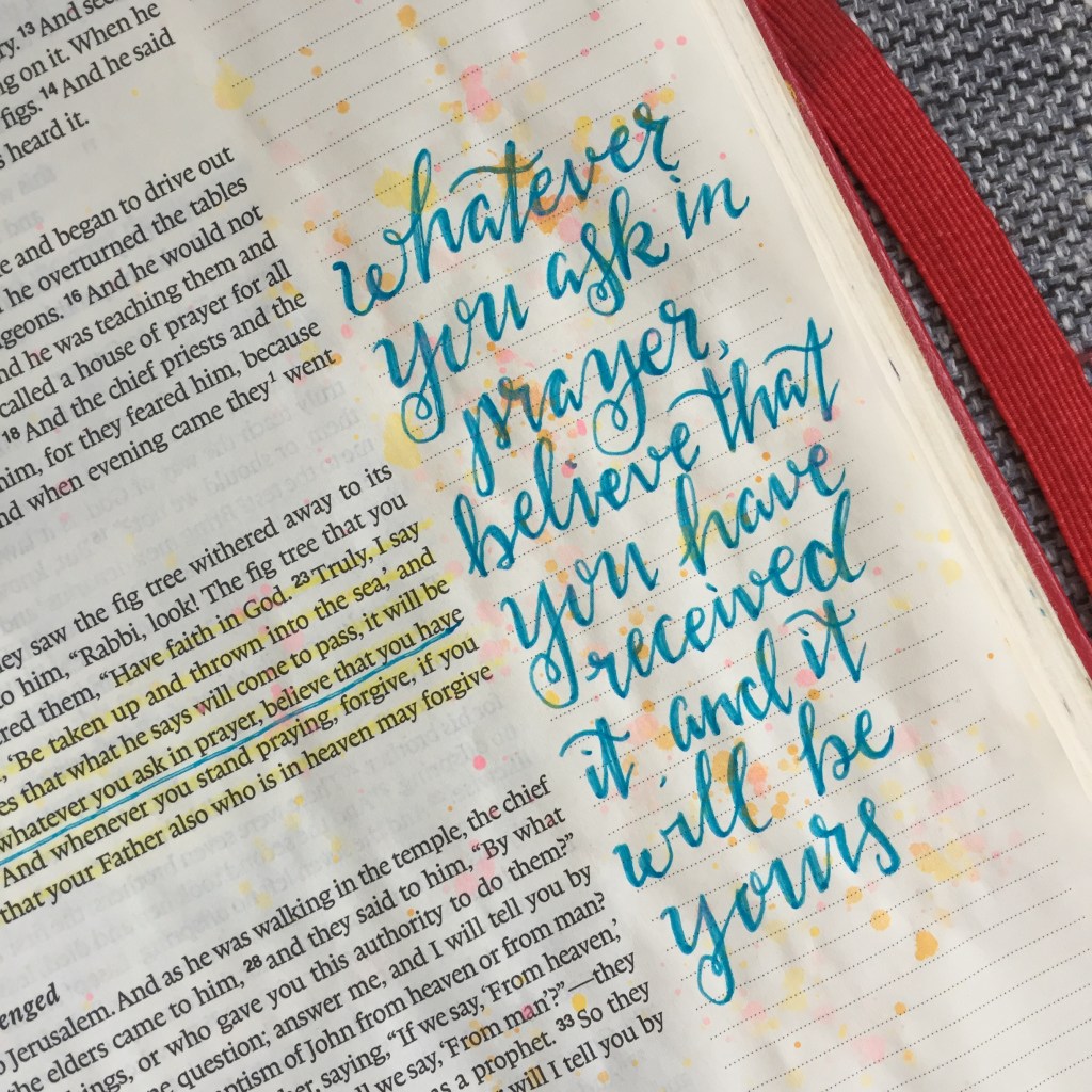 Mark 11v24 “Therefore I tell you, whatever you ask in prayer, believe that you have received it, and it will be yours.“