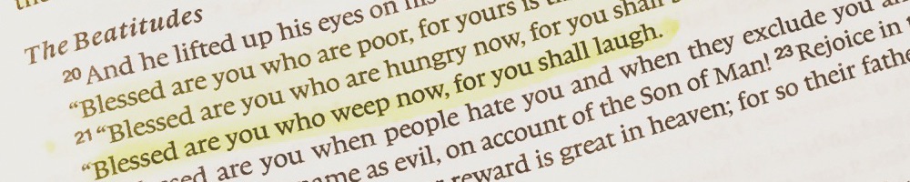 “Blessed are you who weep now, for you shall laugh.” Luke 6:21b ~ sometimes it’s hard to believe the tears will stop and the laughter will return. But they will. Ecclesiastes 3 says “For everything there is a season, and a time for every matter under heaven:” v4 “A time to weep, and a time to laugh; a time to mourn and a time to dance;” when you are flooded by tears, it’s hard to ever imagine laughing or dancing again. But they come. This verse promises the time of tears ends and the time of laughter and dancing returns/begins. With time and healing, they come.