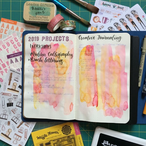 Then I have my “2019 Projects” page, this is where I expand those “goals” from the looking forward page. The one thing I really want to work on in 2019 is workshops – I’ve been offered the opportunity to run a modern calligraphy / brush lettering course up here in Northumberland and I’m really excited by the idea. I’d also love to do a creative journaling workshop to help inspire others to journal more, because journaling is just such a huge part of my life, I am very passionate about it!!