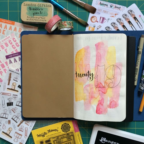 The first page this year was my page of words and verses for 2019. Quite often I actually fill this page in AFTER the next double spread, but I like to have it at the begining so it’s super easy to find. I sit down and ask God what word, words or verses he wants to share with me for the new year. This year I felt like my word for 2019 may be “Restoration” – which is a word that God spoke to me a lot through a few years ago, but I feel there is more to be learned. So thinking about that word I then asked for verses, and had quite a few to write down. I’ve left a blank page so I can add more over the coming weeks.