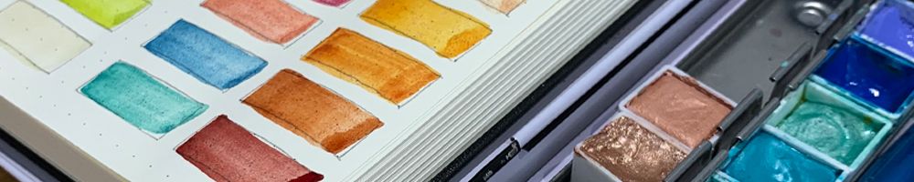 Swatching my watercolour palette in my new bullet journal. I could spend days swatching, so relaxing… Again, I’m really impressed with the 120gm paper in this journal, it holds the paint well.
