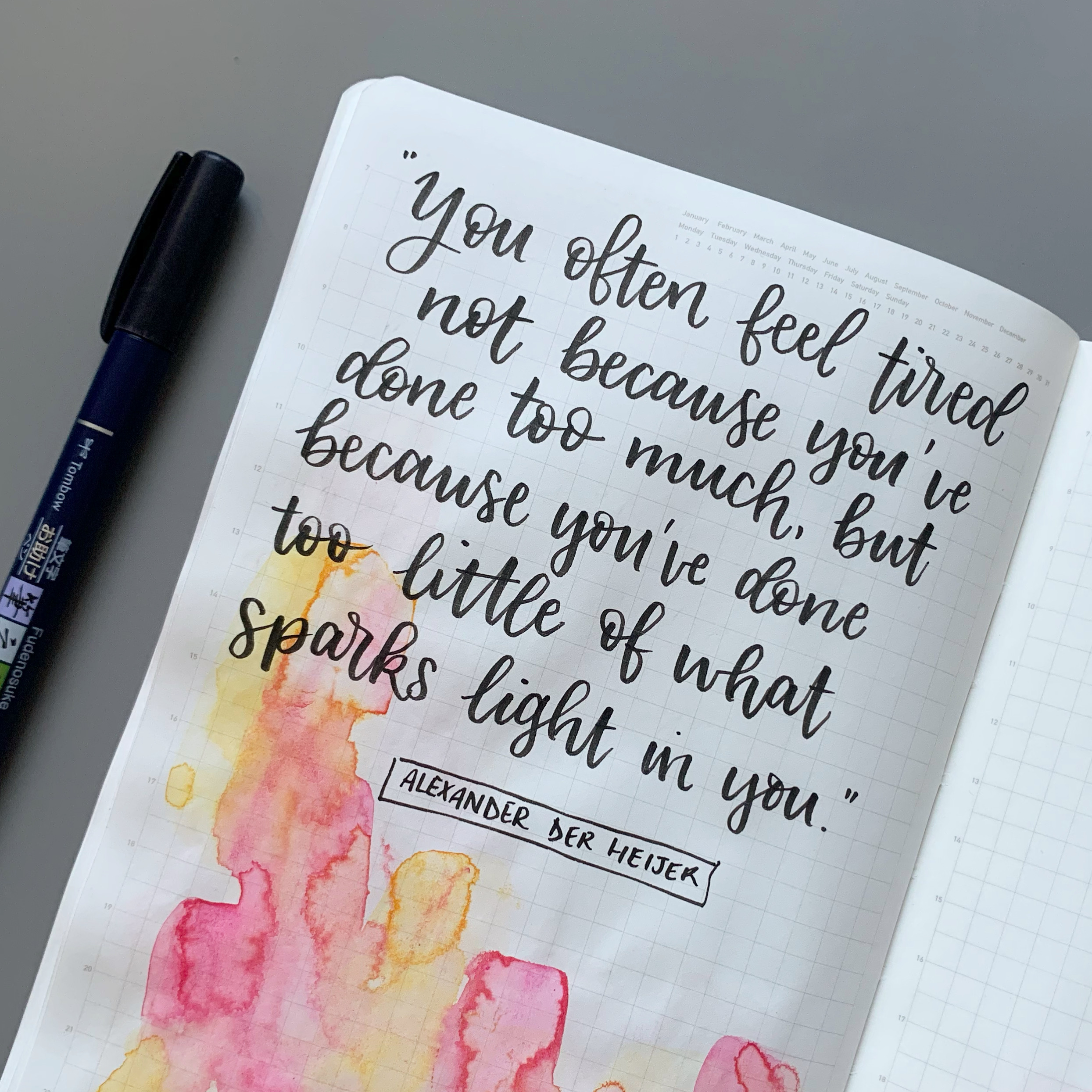 “You often feel tired, not because you’ve done too much, but because you’ve done too little of what sparks a light in you.” – Alexander Den Hayer