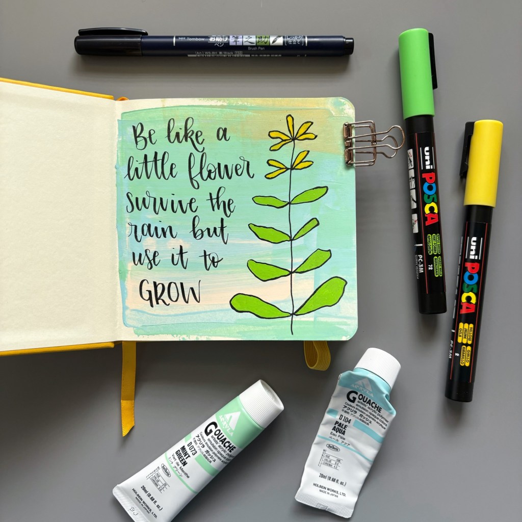 “Be like a little flower, survive the rain but use it to grow.” I’m not sure who originally said this, but @charismahorton shared it on her feed a while ago and I loved it so much I saved it. And it seemed like a good quote for the first page of my new art journal 🥰